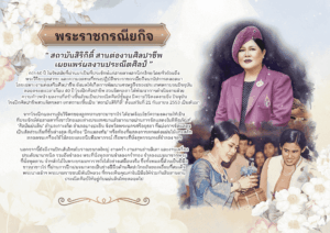 • “สถาบันสิริกิติ์”: ทรงจัดตั้งสถาบันนี้ขึ้นเพื่อสานต่อและเผยแพร่ผลงานประณีตศิลป์ไทย