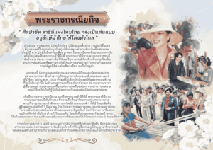 • “ฟาร์มตัวอย่างตามพระราชดำริ”: ทรงจัดตั้งฟาร์มตัวอย่างเพื่อเป็นศูนย์เรียนรู้การเกษตรแบบครบวงจร